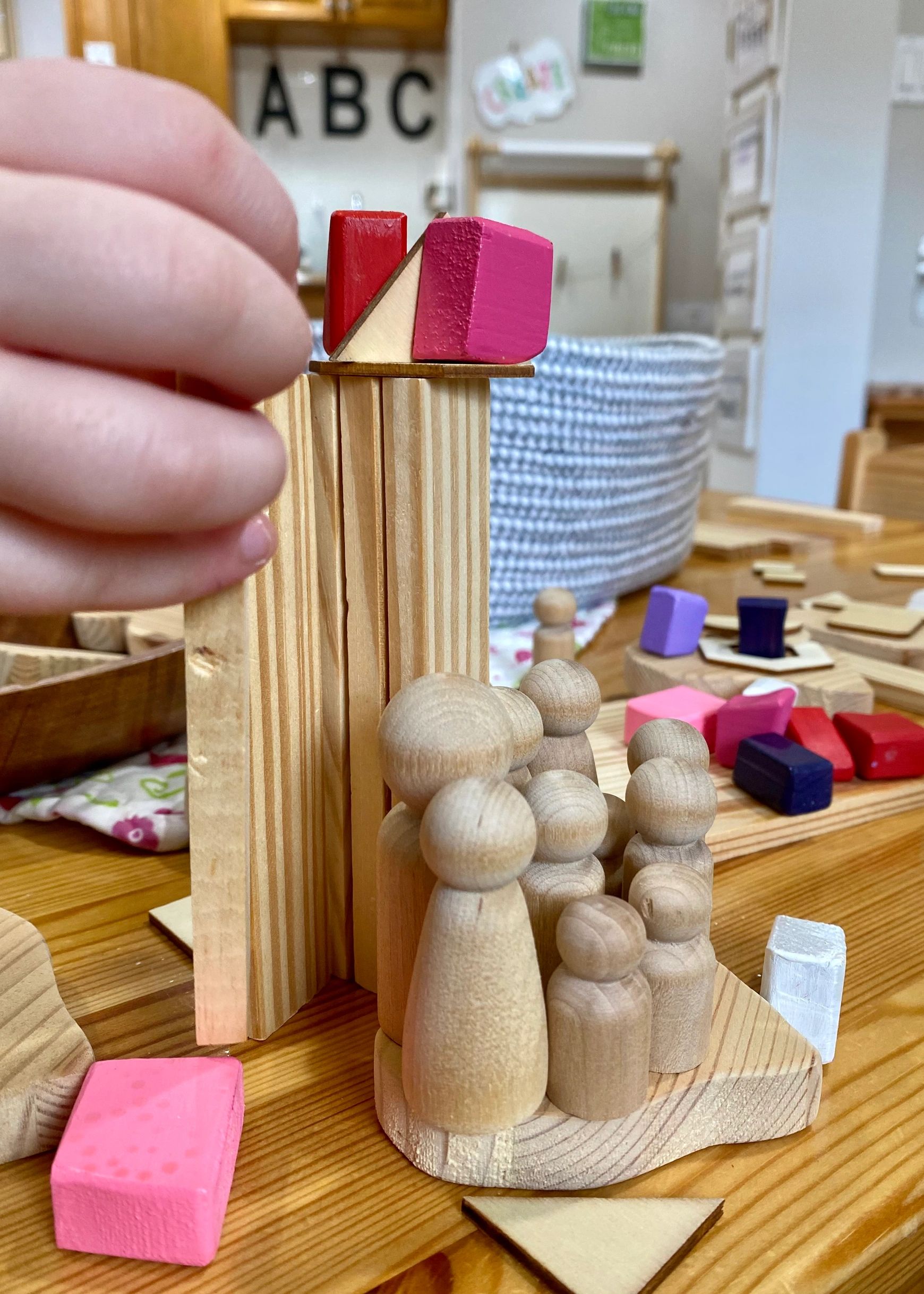 Off to the noodle room we go, where we discover all kinds of dramatic play and block rug play. We do our best thinking and doing.